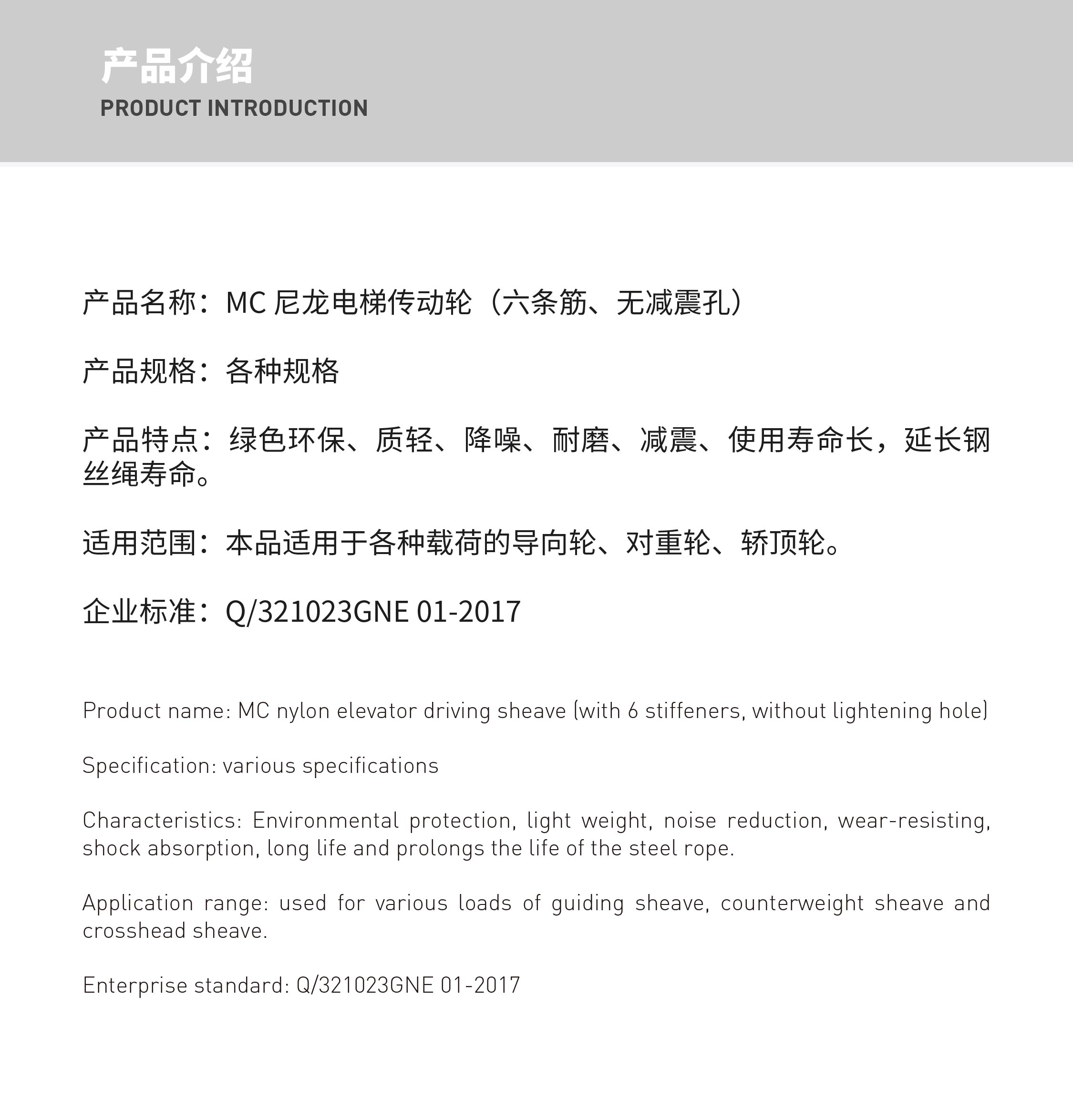 MC 尼龙电梯传动轮(六条筋、无减震孔)